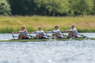 The Women’s Quad of Susie Dear, Rebecca Wilde, Rosa Thompson, and Lina Kuehn raced well to win the 1900m time trial and take the win in the A final in style.